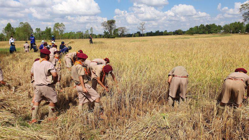 ครู อาจารย์ และนักเรียน เข้า เรียนรู้ ศาสตร์ของพระราชา พร้อมทั้งร่วมกันเกี่ยวข้าว ภายในโครงการฟาร์มต้นแบบ “ซะเราว์ แตร็ย สะเร็น”