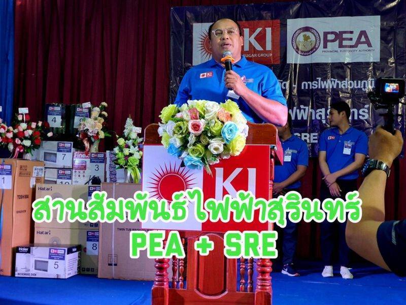 โดย KI GROUP บริษัท ไฟฟ้าสุรินทร์ บริษัท ไฟฟ้าสุรินทร์ จำกัด และการไฟฟ้าส่วนภูมิภาค PEA & SRE ร่วมโครงการสานสัมพันธ์ไฟฟ้าสุรินทร์ PEA & SRE มีผู้บริหารและตัวแทนเจ้าหน้าที่ของหน่วยงานการไฟฟ้าส่วนภูมิภาค จาก 15 หน่วยงาน ทั้งในจังหวัดสุรินทร์ และจังหวัดบุรีรัมย์ รวมถึง ตัวแทนจาก KI GROUP บริษัท ไฟฟ้าสุรินทร์ จำกัด โดย KI GROUP บริษัท ไฟฟ้าสุรินทร์ จำกัด ได้เล็งเห็นถึงความสำคัญในการสร้างสัมพันธ์ของบุคลากรของบริษัทฯ และหน่วยงานการไฟฟ้าส่วนภูมิภาค จึงได้จัดโครงการสานสัมพันธ์หน่วยงานการไฟฟ้าส่วนภูมิภาค PEA & SRE