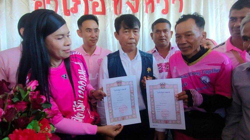 เปิดภาพนาที คู่รักออนไลน์เจอหน้าครั้งแรก โผกอดอย่างสุดซึ้ง เจ้าบ่าวลั่นสวยตรงปก ก่อนจูงมือจดทะเบียนสมรส เอฟซีมอบรถเป็นของขวัญ นายอำเภอ อวยพร ขอให้ครองรักกันตลอดไป ท่ามกลางแขกผู้มีเกียรติมาร่วมงานคับคั่ง