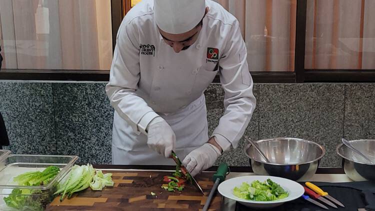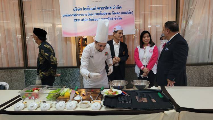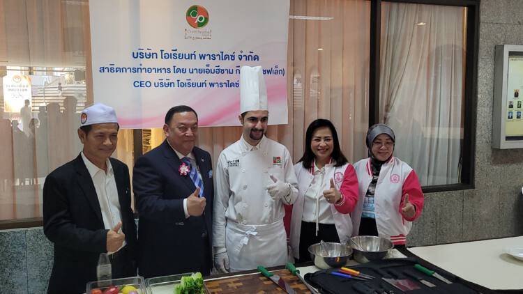 ‘การมาในวันนี้ ได้นำนายเอ็มฮีซาม กือเดร (เชฟเล็ก) ประธานเจ้าหน้าที่บริหารบริษัท โอเรียนท์ พาราไดซ์ จำกัด สาธิตการทำอาหารสำหรับการประกอบอาชีพให้พี่น้องที่สนใจ เชฟเล็กเป็นเชฟที่มีความสามารถทำอาหารให้กับสถานทูต ใครสนใจสามารถเข้ามาเรียนเพื่อเป็นได้’นายจุติ กล่าว