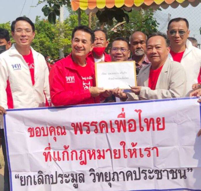 หน.พรรคเพื่อไทย รับหนังสือจากชมรมวิทยุกระจายเสียงภาคประชาชนจังหวัดสุรินทร์ ยื่นหนังสือขอให้พรรคเพื่อไทย ผลักดันการแก้ไข พรบ.องค์กรจัดสรรคลื่นความถี่ ให้สำเร็จ เพื่อให้ ผปก.วิทยุสามารถทำหน้าที่สื่อวิทยุกระจายเสียงในท้องถิ่นต่อไป โดยไม่ต้องมีการปิดสถานีและไม่มีการประมูล