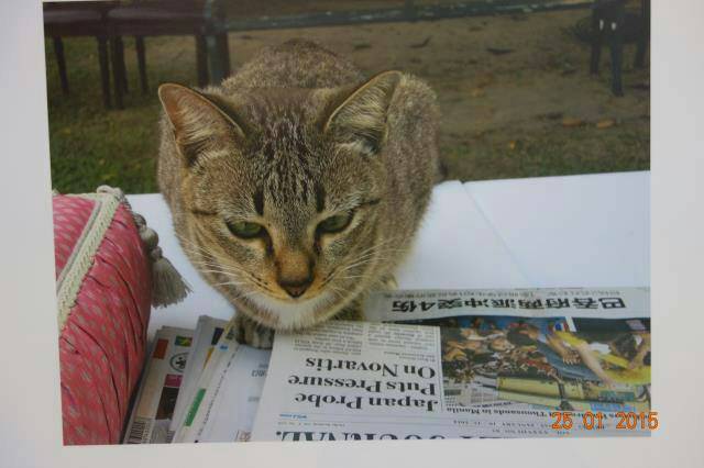 พอถึงวันหยุดคนที่รู้จักไปหาก็นอนหงายท้องเล่น ก็เลยสงสัยว่าใช่หรือเปล่า ต้องไลน์ถามไปทั่วว่าใช่หรือเปล่า พอเอากลับมาก็เอาไปสแกนเพราะมีชิพติดอยู่ เวลานี้ไม่หนีไปไหน อยู่เรียบร้อยดี และมีแมวตัวอื่นมาจีบ นี่ก็ชอบอ่านหนังสือพิมพ์ พอเราจะอ่านหนังสือพิมพ์ก็กระโจนขึ้นมาบนหนังสือพิมพ์”