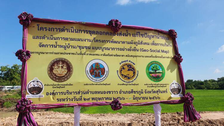 วันที่ 21 มิถุนายน 2566 เมื่อเวลา 09.00 น. นายพงศ์รัตน์ ภิรมย์รัตน์ อธิบดีกรมโยธาธิการและผังเมือง ลงพื้นที่จังหวัดสุรินทร์ Kick off ลุยโครงการขุดลอกคลองระบายน้ำ ในพื้นที่ตำบลหนองขวาว ตำบลยาง และตำบลระแงง อำเภอศีขรภูมิ จังหวัดสุรินทร์ พัฒนาต่อยอดตามแผนงานโครงการจัดทำผังภูมิสังคมเพื่อการบริหารจัดการน้ำหมู่บ้าน/ชุมชน แบบบูรณาการอย่างยั่งยืน (Geo-social Map) โดยอาศัยกลไกความร่วมมือการมีส่วนร่วมของภาคีเครือข่าย ภาครัฐ ภาคเอกชน และภาคประชาชน ในการแก้ไขปัญหาน้ำท่วม น้ำแล้ง พัฒนาคุณภาพชีวิตให้กับพี่น้องประชาชน นำไปสู่การเปลี่ยนแปลงสู่สิ่งที่ดี Change for Good ในพื้นที่ทุกมิติ