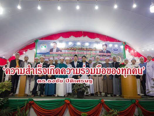 งานการกุศล อลังการงาน 2 ยุค เพื่อสร้างกำแพงสุสาน (กุโบร์)มัสยิดนูรุลอามาล (บ้านช่องเนียง) เป็นไปด้วยความคึกคัก ดร.ธงชัย ปิติเศรษฐ ระบุ ความสำเร็จเกิดจากความร่วมมือร่วมใจและความช่วยเหลือของอัลเลาะฮ์