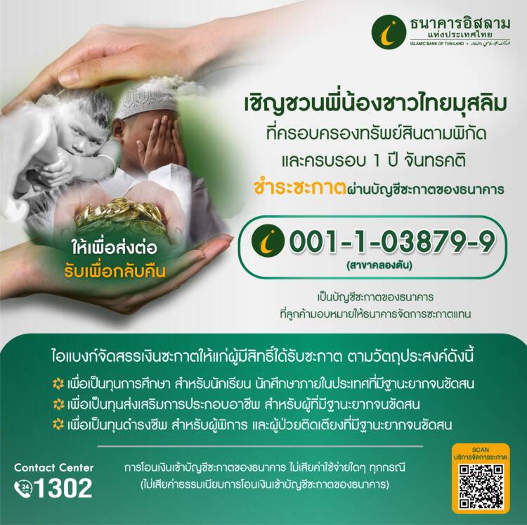 บัญชีซะกาตของธนาคาร : https://www.ibank.co.th/th/product/zakat/lists/zakat-management