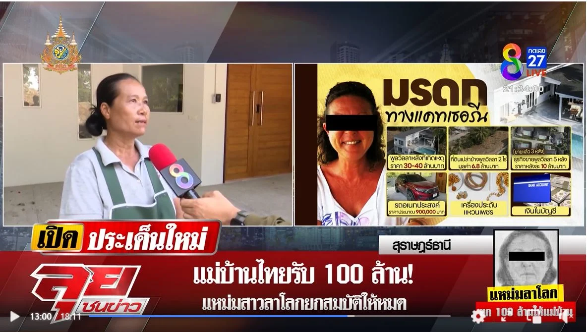 เมื่อวันที่ 2 พ.ค. ผู้สื่อข่าวรายงานว่า รายการลุยชนข่าว ได้ไปพบ ป้าติ๋ม ชาว อ.วานรนิวาส จ.สกลนคร แม่บ้านคนสนิทของผู้ตายแล้ว เปิดใจทั้งน้ำตาว่า ได้รู้จักกับนางแคทเทอร์รีน มากว่า 17 ปีแล้ว โดยเพื่อนของนางแคทเทอร์รีน ได้แนะนำให้ตนเองไปสมัครทำงานเป็นแม่บ้านที่ห้องเช่าของคุณแคทเทอร์รินก่อน จากนั้น นางแคทเทอร์รีนก็ได้ขยายธุรกิจจากห้องพักให้เช่า มาสร้างรีสอร์ท สร้างวิลล่า ธุรกิจเริ่มขยายใหญ่ขึ้นเรื่อยๆ ซึ่งตนเองก็ได้เป็นแม่บ้านคอยช่วยนางแคทเทอร์รีนมาตลอด กระทั่งล่าสุดเมื่อ 12 ปีก่อน นางแคทเทอร์รีนได้มาซื้อที่ดินบนเกาะสมุย โดยจดทะเบียนเป็นบริษัท เพื่อสร้างวิลล่า จำนวน 5 หลัง และสร้างบ้านวิลล่าหลังนี้ไว้พักอาศัยเอง ตอนนั้นมีนางแคทเทอร์รีน คุณวินเซ่น (สามีเก่า) และตนเอง ซึ่งเป็นแม่บ้าน มีกันเพียง 3 คน มาช่วยกันดูแลในการสร้างวิลล่าหลังนี้ และทำพิธียกเสาเอกด้วยกัน