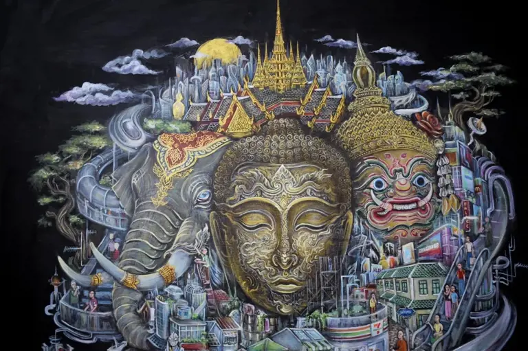 ส่วนที่มาของภาพที่เห็นในสื่อ อาจารย์เป็นคนตั้งหัวข้อให้กับเด็กไว้ว่าวิถีไทยในอนาคตแบบกว้างๆ นักเรียนจะเอาไปคิดและออกแบบมาเสนออาจารย์ แล้วอาจารย์จะแนะนำเพิ่มเติม เพื่อให้นักเรียนร่างออกมาเป็นโครงสร้าง เป็นรูปภาพดังกล่าวเพื่อเข้าประกวด