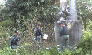 เกิดหตุระเบิดเสาไฟฟ้า และแขวนป้ายผ้า วันนี้ ๕ พ.ค.๖๐ เวลาประมาณ ๐๔.๑๐ น. รับแจ้งเหตุมีการก่อกวนด้วยการแขวนป้ายผ้า บริเวณสะพานคลองน้ำขุ่น รอยต่อ ม.๕ ต.จะแหน อ.สะบ้าย้อยฯ กับ ต.ธารคีรี อ.สะบ้าย้อยฯ เกิดเหตุระเบิดเสาไฟฟ้าบริเวณบ้านดารู ต.ธารคีรี อ.สะบ้าย้อยฯ เบื้องต้นเสาไฟฟ้าใด้รับความเสียหาย ไม่มีผู้ใดใด้รับบาดเจ็บคาดว่าเป็นการกระทำของกลุ่ม ผกร.เพื่อก่อกวนและสร้างสถานการณ์ในพื้นที่