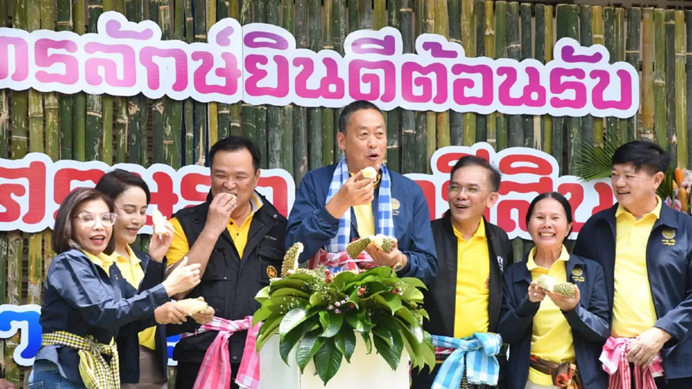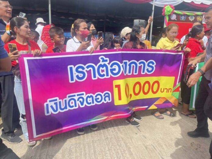 นายกฯ ลุยศรีสะเกษ ประชุมติดตามปัญหายาเสพติด ตกใจเห็นตัวเลขผู้ติดยา บอกน่าห่วง จ่อนำโมเดลร้อยเอ็ดหากสำเร็จต่อยอดทันที ก่อนชิมทุเรียนศรีสะเกษ ขณะชาวบ้านชูป้ายทวงเงินดิจิทัล 10,000 บาท จะได้กี่โมง นายกฯบอก ได้แน่ “ไตรมาส 4 สิ้นปี”