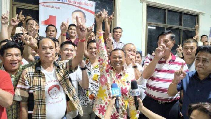 อดีต สส.ปทุมธานี พรรคเพื่อไทย ชู ‘8 บ้านใหญ่’ ผนึกกำลังบวกบารมี ‘ทักษิณ ชินวัตร’ พา ‘ลุงชาญใจดี’ เข้าวินนายก อบจ.ปทุมฯ โดยชนะคู่แข่ง “บิ๊กแจ๊ส” คำรณวิทย์ ธูปกระจ่างไปอย่างหวุดหวิด