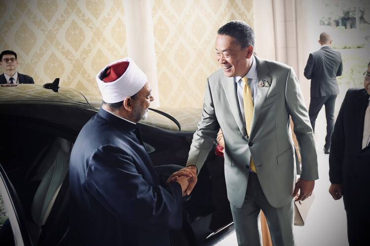 ด้านความร่วมมือระหว่างประเทศ ผู้นำสูงสุดทางศาสนาอิสลามอียิปต์กล่าวชื่นชมบทบาทนายกรัฐมนตรี และประเทศไทยในเวทีระหว่างประเทศ พร้อมแลกเปลี่ยนความคิดเห็นเกี่ยวกับปัญหาขัดแย้งในตะวันออกกลาง ซึ่งทั้งสองฝ่ายต่างเห็นพ้องถึงการแสวงหาแนวทางแก้ไขปัญหาร่วมกัน เพื่อความมั่นคงและสันติภาพที่ยั่งยืน ด้านนายกรัฐมนตรีกล่าวเน้นย้ำว่า ไทยวางตัวเป็นกลาง และสนับสนุนแนวทางสองรัฐ (two-State solution) และเรียกร้องให้ทุกฝ่ายใช้ความพยายามในการแสวงหาแนวทางแก้ไขปัญหาอย่างยั่งยืนและสันติ พร้อมขอบคุณอียิปต์ที่ช่วยเป็นตัวกลางการเจรจาเพื่อให้ปล่อยตัวประกันชาวไทย และขอรับความสนับสนุนจากฝ่ายอียิปต์ต่อไปในการเจรจา เพื่อช่วยเหลือตัวประกันชาวไทยที่เหลืออยู่
