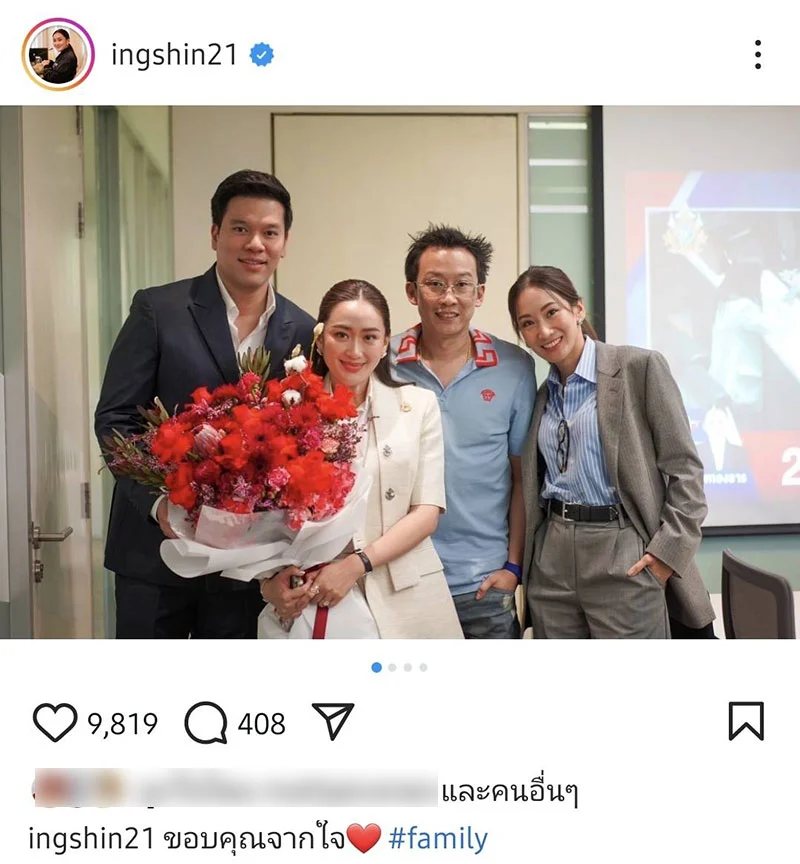 โดยน.ส.แพทองธาร ระบุข้อความว่า “ขอบคุณจากใจ #family “