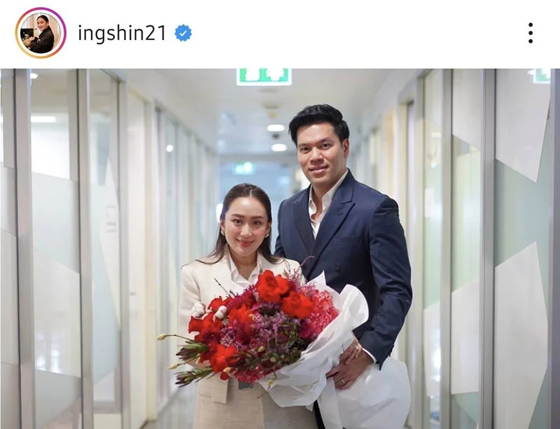 “อุ๊งอิ๊ง” แพทองธาร ชินวัตร เคลื่อนไหวในโซเชียลเป็นครั้งแรก โดยโพสต์ภาพผ่าน อินสตาแกรม ingshin21 จำนวนทั้งหมด4ภาพ โดยมี โอ๊ค-เอม และ ปิฎก สามี หอบช่อดอกไม้แสดงความยินดี