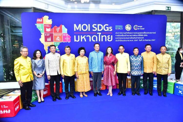 วันนี้ (19 ก.ย. 67) นายอนุทิน ชาญวีรกูล รองนายกรัฐมนตรี และรัฐมนตรีว่าการกระทรวงมหาดไทย เป็นประธานในการประกาศความสำเร็จการพัฒนาที่ยั่งยืนของกระทรวงมหาดไทย (MOI’s Success on Sustainable Development Goals) โดยมี น.ส.ธนนนท์ นิรามิษ ภริยารองนายกรัฐมนตร และรัฐมนตรีว่าการกระทรวงมหาดไทย ดร.วันดี กุญชรยาคง จุลเจริญ นายกสมาคมแม่บ้านมหาดไทย นายสมเจตน์ ลิมปะพันธุ์ น.ส.ไตรศุลี ไตรสรณกุล โฆษกกระทรวงมหาดไทย เอกอัครราชทูตประเทศญี่ปุ่น ประจำประเทศไทย ผู้แทน สถานเอกอัครราชทูตในประเทศไทย ผู้แทนองค์การสหประชาชาติประจำประเทศไทย ผู้แทนองค์กรระหว่างประเทศ รองปลัดกระทรวงมหาดไทย ที่ปรึกษาปลัดกระทรวงมหาดไทย อธิบดี หัวหน้าหน่วยงานรัฐวิสาหกิจ และ ผู้บริหาร ในสังกัดกระทรวงมหาดไทย ผู้ว่าราชการจังหวัด แขกผู้มีเกียรติ และสื่อมวลชน จำนวนวกว่า 500 คน เข้าร่วมในพิธี โดยมีนายสุทธิพงษ์ จุลเจริญ ปลัดกระทรวงมหาดไทย เป็นผู้กล่าวรายงานวัตถุประสงค์การจัดกิจกรรม