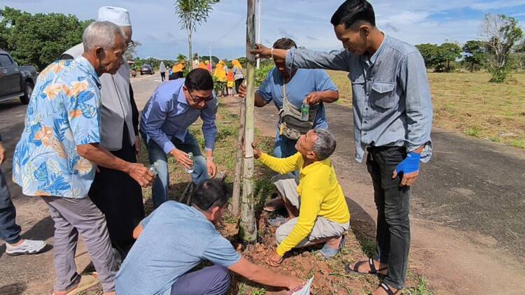 ‘อัลเลาะฮ์ และนบีมูฮัมหมัด สนับสนุนให้ความสะอาดมัสยิด ตลอดจนกุโบร์ให้สวยงาม และพระองค์จะตอบแทนความดีงามของคนที่มาช่วยกันทำ ก็ขอดุอาให้ทุกท่านที่มาช่วยลงแรงปลูกต้นไม้ให้อัลเลาะฮ์ตอบแทนความดีของทุกคน’ นายตอยิบ กล่าว