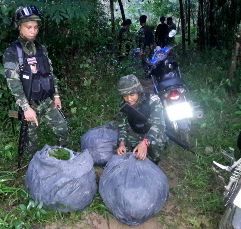 พบบุคคลต้องสงสัย 6 คน ขับรถ จยย.3 คันจึงแสดงตัวเข้าตรวจค้น ทิ้งรถวิ่งหนีไปได้ 5 คน ควบคุมตัวไว้ได้ 1คน ได้ตรวจสอบพบใบกระท่อมประมาณ 100 กิโล