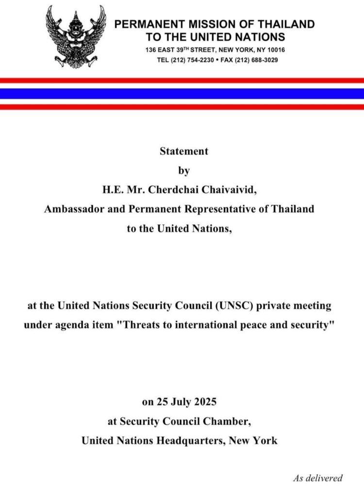 เปิดคำแถลงไทยต่อ UN ร่ายยาว เขมรโจมตีก่อน สังหารพลเรือนอย่างไรก็มนุษยธรรม