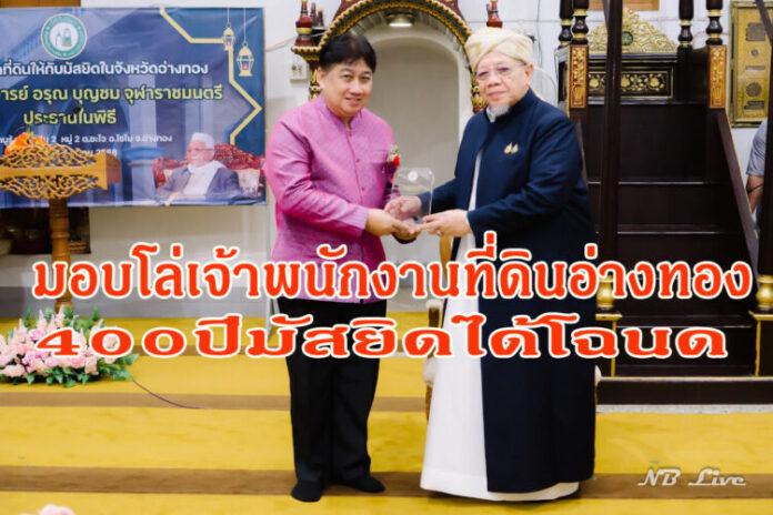 400 ปีมัสยิด ต.ชะไว อ.ไชโย จ.อ่างทอง ได้มีเอกสารสิทธิ์ถูกต้องตามกฎหมาย โดยการทำงานของที่ดินจังหวัดอ่างทอง ที่มีนายประภัสร์ รื่นภาคเพ็ชร เจ้าพนักงานที่ดินจังหวัด