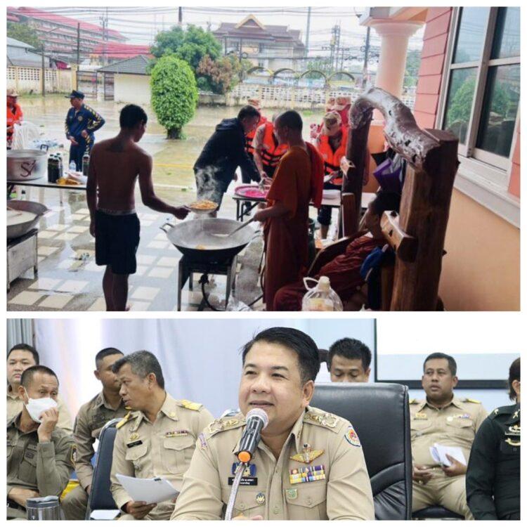 ต่อมา โพสต์ภาพ พร้อมข้อความ ระบุว่า 23 พ.ย.2568 คณะสงฆ์วัดหาดใหญ่ใน วัดสันติวรคุณ นายอำเภอหาดใหญ่ เปิดครัวหน้าบ้านพักนายอำเภอหาดใหญ่ ช่วยกันหุงข้าวด้วยแก๊ส ทอดไข่ แจกชาวบ้าน คนหาดใหญ่ใน ยามค่ำคืน ที่น้ำท่วม ไร้ไฟ ไร้อาหาร