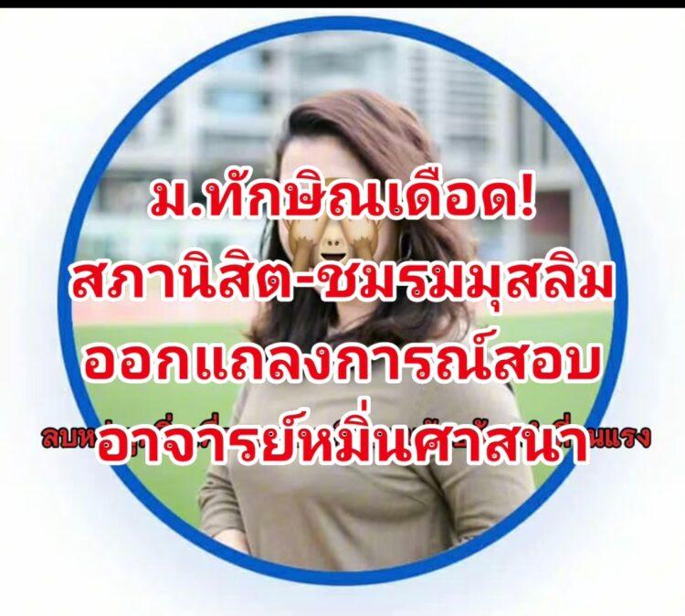 ม.ทักษิณเดือด!ชมรมมุสลิม-สภานิสิตม.ทักษิณ ออกแถลงการณ์ให้ตรววจอาจารย์ดูถูกศาสนา-หมิ่นศักดิ์ศรีความเป็นมนุษย์