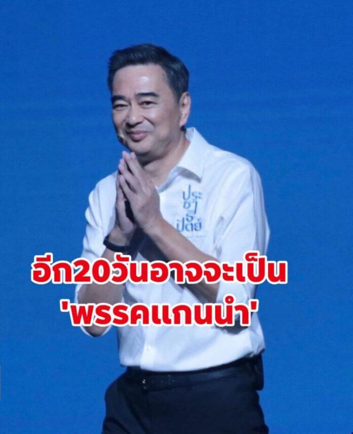 นายอภิสิทธิ์ กล่าวว่า 3 เดือน เดินมาถึงจุดนี้ มีความอดใจระดับหนึ่ง ไม่มีใครพูดเรื่องสูญพันธุ์แล้ว เริ่มมีคนบอกว่าไม่ใช่พรรคเล็กแล้ว มีคนเริ่มพูดว่าเป็นพรรคตัวแปร กลัวอย่างเดียวอีก 20 วันกลายเป็นพรรคแกนนำ เดี๋ยวเตรียมตัวไม่ทัน ซึ่งเรียกเสียงปรบมือและเสียงกรี๊ดของ คนที่มาร่วมรับฟัง