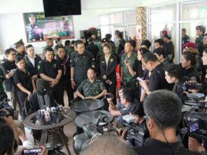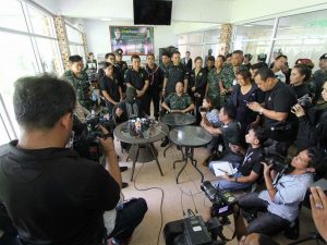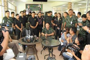 ขณะนี้แม่ทัพ4 ได้เดินทางมาถึง และพบปะกับ ทีมงานที่ติดตามคดีนี้ จากนั่นได้เข้าห้องรับรอง เพื่อรับทราบสถานการณ์และเตรียมการแถลงข่าว ซึ่งขณะนี้คืบหน้ามีหมายจะบ 9 คน และควบคุมตัวตัวตาม พรก,ฉุกเฉิน 2 คน นอกจากนั้น มีผู้ต้องหาอีก 2 คนที่ถูกจับคดีระเบิดเสาไฟฟ้าที่ผ่านมา