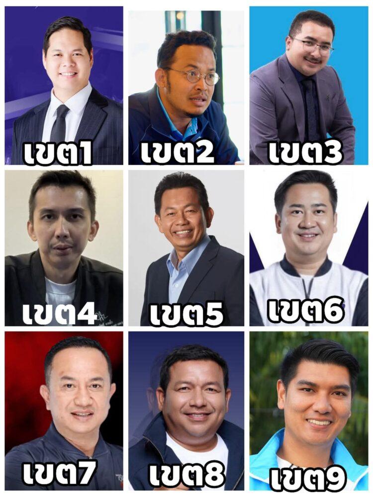 ผลการสำรวจรายเขตพบว่า เขต 1 สรรเพชญ บุญญามณี พรรคภูมิใจไทย มีคะแนนนำ เขต 2 จุรี นุ่มแก้ว พรรคประชาธิปัตย์ นำแบบหายใจรดต้นคอ โดยมี นพ.สุภัทร ตามมาติด ๆ เขต 3 ทนายอาร์ม สุวรรณรักษา พรรคประชาธิปัตย์ เขต 4 ชนนพัฒฐ์ นาคสั้ว พรรคกล้าธรรม เขต 5 ปรีชา สุขเกษม พรรคประชาธิปัตย์ เขต 6 อนุกูล พฤษานุศักดิ์ พรรคภูมิใจไทย เขต 7 ณัฏฐชนน ศรีก่อเกื้อ พรรคภูมิใจไทย เขต 8 ฆอชาลี ดุสะเหม๊าะ พรรคภูมิใจไทย และเขต 9 ศักดิ์สิทธิ์ ขาวทอง พรรคประชาธิปัตย์