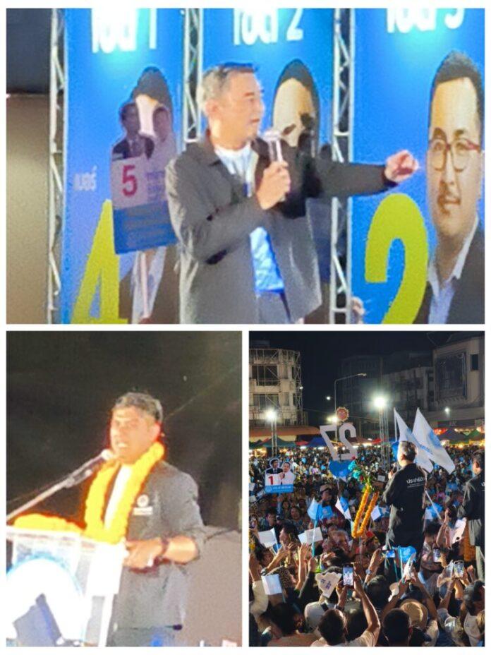 ‘อภิสิทธิ์’ นำทีมประชาธิปัตย์ เปิดปราศรัยใหญ่ สงขลาฟ้าคืนใต้ เย้ย คนปรามาส ‘ประชาธิปัตย์’ ไร้อนาคต กวักมือมาดูตอนเป็นนายกฯ บริหารจัดการน้ำท่วมเป็นระบบ-เงินเยียวยา เยอะกว่า-เร็วกว่า ซัดรัฐบาลยุบสภาฯ หนี ชาวบ้านบางคนยังไม่ได้เงินสักบาท ตั้ง ‘ธรรมนัส’ นั่ง ปธ.ดูแลจัดการน้ำยุ่งกว่าสั่งไก่ทอด วัดใจคนเขต 4 สงขลา บอก กลัวทุนเทา-สแกมเมอร์ จะเอาคนมีคดีถูกยึดทรัพย์ หรือจะให้โอกาสคนใหม่ ไม่มีคดีติดตัวมาทำงาน ชม ‘สิงโต’ มีอุดมการณ์ยืนหยัดอยู่กับ ปชป. แม้ครอบครัวความคิดหลากหลาย