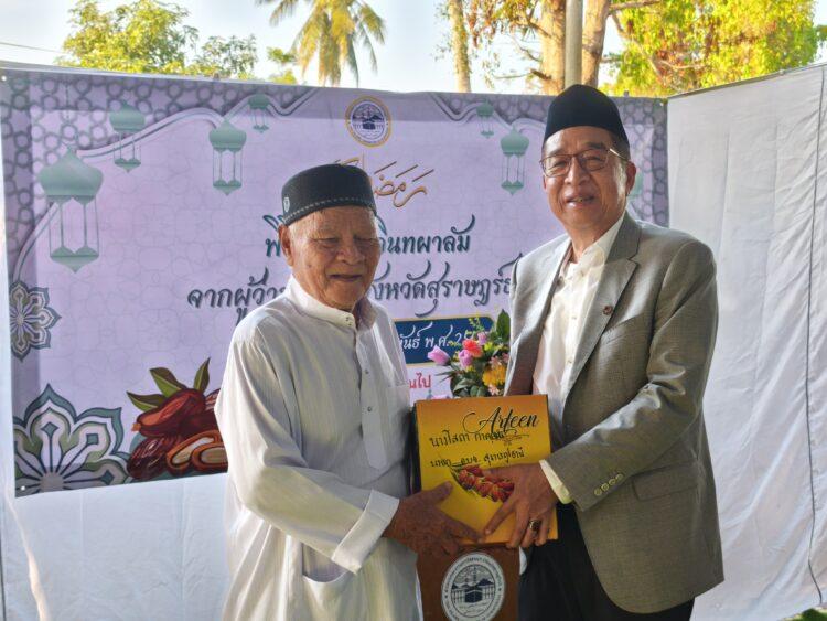 ฮัจยี ดร.ธงชัย ปิติเศรษฐ ประธานคณะกรรมการอิสลามประจำจังหวัดสุราษฎร์ธานี กล่าวว่า ขอขอบคุณผู้ว่าราขการจังหวัดสุราษฎร์ฯ ที่ได้มอบหมายให้ปลัดจังหวัด นายชวลิต โรจนรัตน์ นำอิทผลัมมามอบให้พี่น้องมุสลิมเพื่อเป็นขวัญกำลังใจในเดือนรอมฎอน