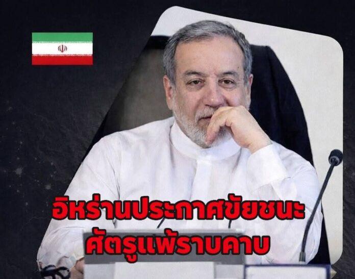 ด้านอับบาส อารักชี รัฐมนตรีว่าการกระทรวงการต่างประเทศอิหร่าน ออกแถลงการณ์ในนามของสภาความมั่นคงแห่งชาติสูงสุดของอิหร่าน ระบุว่า อิหร่านพร้อมยุติปฏิบัติการทางทหารเชิงป้องกัน หากการโจมตีจากฝ่ายตรงข้ามถูกยุติลง