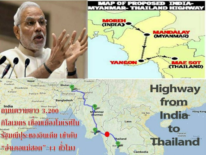 โครงการทางหลวงเชื่อมอินเดีย เมียนมา ไทย ซึ่งกำลังดำเนินการอยู่ในระยะทาง 1,600 กิโลเมตร จากเมืองโมเรห์ เมืองชายแดนถึงมณีปุระ