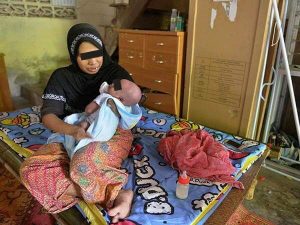 และที่สำคัญเพิ่งคลอดลูกชายได้เพียง 26 วัน หลังจากที่ถูกชายหนุ่มในหมู่บ้านเดียวกันข่มขืนจนตั้งท้อง ซึ่งขณะนี้สภาพครอบครัวลำบากมาก อาศัยอยู่กับพี่สาวอายุ 60 ปี และหลานสาวอายุ 22 ปี ซึ่งต้องออกไปทำงานรับจ้างนอกบ้าน เช้าไปเย็นกลับ น.ส.อามีเนาะ จิเต็น อายุ 35 ปี น้องสาวของ น.ส.ฝาตีเหม๊าะ เล่าเหตุการณ์ที่เกิดขึ้นให้ฟังว่า เมื่อวันที่ 4 พ.ค.ที่ผ่านมา พี่สาวได้เกิดปวดท้องและมีเลือดไหลออกมาทางช่องคลอด จึงได้พาไปหาหมอที่โรงพยาบาลจะนะ แต่ปรากฏว่าผลตรวจหมอบอกว่าตั้งท้องได้ 10 เดือน และใกล้คลอด ปากมดลูกเปิด 5 เซนติเมตร จึงส่งต่อไปยังโรงพยาบาลสงขลา และต้องผ่าท้องเพราะคลอดเองไม่ได้ และได้ลูกชายสภาพร่างกายครบ 32 แต่ยังมีปัญหาลิ้นติดกับเหงือกล่าง ซึ่งแพทย์ต้องเตรียมแผนผ่าตัดรักษาอีกครั้ง น.ส.อามีเนาะ กล่าวต่อว่า ไม่มีใครรู้มาก่อนว่าพี่สาวตั้งท้อง เพราะปกติก็จะมีรูปร่างท้วมๆ อยู่แล้ว และคลุมฮีญาบเป็นประจำ จึงไม่มีใครสังเกต รวมทั้งพี่สาวก็ไม่ได้พูดอะไร อาจเป็นเพราะไม่รู้ด้วยซ้ำว่าตัวเองตั้งท้อง หรือเกิดอะไรขึ้นกับตน แต่โชคดีที่เด็กปลอดภัย และเมื่อสอบถามเรื่องราวที่เกิดขึ้น พี่สาวก็บอกว่าถูกชายหนุ่มในหมู่บ้าน ซึ่งรู้จักกันดีลวงไปข่มขืนที่ขนำในละแวกบ้าน จึงได้เข้าแจ้งความกับตำรวจ สภ.จะนะ เพื่อให้ดำเนินคดีกับผู้ก่อเหตุ และให้ทางครอบครัวฝ่ายชายร่วมรับผิดชอบกับสิ่งที่เกิดขึ้นด้วย น.ส.อามีเนาะ บอกด้วยว่า ขณะนี้ครอบครัวเดือดร้อนมาก เพราะพี่สาวไม่อยู่ในสภาพที่สามารถเลี้ยงดูลูกได้ ตนจึงต้องรับไปดูแลชั่วคราว นอกจากนี้ ยังมีทั้งเรื่องค่าใช้จ่าย ทั้งค่านม ค่าผ้าอ้อม และสิ่งของเครื่องใช้สำหรับเด็กอ่อน นอกเหนือจากค่าใช้จ่ายประจำวันในครอบครัว ซึ่งญาติพี่น้องต้องช่วยกันดูแล ลำพังแค่เบี้ยยังชีพคนพิการเดือนละ 800 บาทนั้นไม่เพียงพอ โดยล่าสุด ทางสำนักงานพัฒนาสังคมและความมั่นคงของมนุษย์ ได้นำเอกสารของทั้งแม่และลูกเพื่อไปยื่นเรื่องในการช่วยเหลือแล้ว และหากผู้ใจบุญต้องการช่วยเหลือให้บริจาคผ่านบัญชี น.ส.ฝาตีเหม๊าะ จิเต็น ธนาคารกรุงไทย สาขาจะนะ เลขที่บัญชี 986-0-53894-8 หรือโทรประสานงานได้ที่ตนหมายเลข 089-738-4998 ซึ่งตอนนี้กำลังต้องการความช่วยเหลือด่วนมาก นอกจากนี้ อยากให้ครอบครัวของผู้ที่ก่อเหตุยื่นมือเข้ามาช่วยเหลือด้วย แม้ว่าจะอยู่ในระหว่างดำเนินการทางคดี แต่ก็รู้ตัวชัดเจนแล้วว่าเป็นใครเพราะพี่สาวจำได้ ขณะที่ผู้สื่อข่าวได้สอบถามความรู้สึกของ น.ส.ฝาตีเหม๊าะ ซึ่งเธอบอกแต่เพียงสั้นๆ ว่า รักลูกมาก และอยากดู