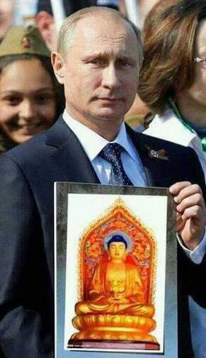 อย่างไรก็ตาม ภาพที่ปรากฎปูติน ถือรูปพระแบบมหายาน