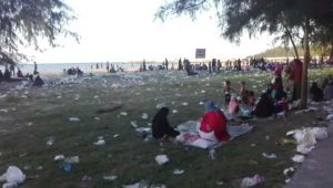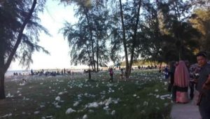 “เมื่อมีงานเทศกาลประจำปี สถานที่ท่องเที่ยวแต่ละที่ก็จะเต็มไปด้วยผู้คนมากมาย แต่ผู้คนเหล่านั้นยังขาดจิตสำนึกในเรื่องความสะอาด จนทำให้สถานที่ท่องเที่ยวหลายแห่งในจังหวัดนราธิวาสมีขยะล้นพื้นที่” คือ ประโยคที่สร้างความเจ็บปวดในใจของนายนูรฮีซาม บินมามุ หรือน้องซัม และเพื่อนสมาชิกกลุ่มยังยิ้ม ที่เป็นกลุ่มเล็กๆ ที่จัดตั้งกันเองร่วมกับเด็กๆ ในพื้นที่อำเภอแว้ง จังหวัดนราธิวาส เพื่อค้นหาความหมายของบ้านเกิดและวัฒนธรรมท้องถิ่น ผ่านกิจกรรมศิลปะและสิ่งแวดล้อม จึงเป็นที่มาของการเริ่มนับหนึ่ง ในการทำกิจกรรม “บางนรา…ยังยิ้ม” เก็บขยะเพื่อสร้างผลบุญในเทศกาลวันฮารีรายอ และใช้วันรายอที่ 4 ในการจัดกิจกรรมนี้ขึ้น