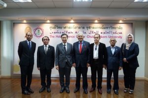 วันพฤหัสบดีที่ 13 กรกฎาคม 2560 เวลา 16.00 น. ดาโต๊ะ สะรี ฮัมซะฮฺ ไซนุดดิน (Dato’ Seri Hamzah Zainuddin) รัฐมนตรีว่าการกระทรวงการค้า สหกรณ์และผู้บริโภค ประเทศมาเลเซีย นำคณะผู้บริหารระดับสูงของกระทรวงจำนวน 10 คนพร้อมผู้แทนทางการค้าของมาเลเซีย 12 คนเข้าเยี่ยมศูนย์วิทยาศาสตร์ฮาลาล จุฬาลงกรณ์มหาวิทยาลัย โดยมีทีมบริหารของศูนย์วิทยาศาสตร์ฮาลาล พร้อม รศ.ดร.ปกรณ์ ปรียากร ผู้อำนวยการสถาบันมาตรฐานฮาลาลแห่งประเทศไทยร่วมให้การต้อนรับ ทีมของท่านรัฐมนตรีเมื่อลงจากเครื่องบินเดินทางตรงมาที่จุฬาลงกรณ์มหาวิทยาลัยในทันที ท่านรัฐมนตรีอยากทราบความก้าวหน้าของฮาลาลประเทศไทย และประสงค์จะสร้างความร่วมมือระหว่างมาเลเซียและประเทศไทยด้านการพัฒนางานรับรองฮาลาลโดยเฉพาะอย่างยิ่งกระบวนการใช้วิทยาศาสตร์ฮาลาลซึ่งทางมาเลเซียยอมรับว่าประเทศไทยมีความก้าวหน้าทางด้านนี้ในระดับสูง