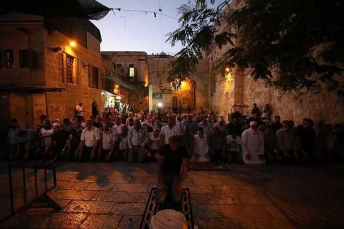 ชาวปาเลสไตน์ละหมาดหน้ามัสยิดอัลอักซอ ท้าทายอิสราเอล! 19 กรกฎาคม 2017 FacebookFacebookXTwitterLINELineชาวปาเลสไตน์ละหมาดมัฆริบหน้าประตูทางเข้า ไม่ยอมเข้ามัสยิดอักซอผ่านประตูตรวจอาวุธของอิสราเอล ทั้งนี้ การกระทำของอิสราเอลดังกล่าว ถือเป็นการละเมิดมติสหประชาชาติ ที่ให้สิทธิแก่จอร์แดนในการดูแลมัสยิดอักซอ Cr. เฟสบุ๊ค Ghazali Benmad FacebookFacebookXTwitterLINELine
