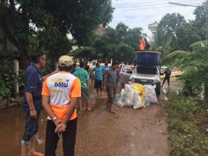 วันที่ 4 ส.ค.2560 เวลา 10.00 น . นายสิทธิชัย สวัสดิ์แสน นายอำเภอพระสมุทรเจดืย์ และกรรมาธิการฝ่ายในประเทศ นายวินัย สวัสดิ์มณี กรรมการสภาเครือข่ายช่วยเหลือด้านมนุษยธรรม สำนักจุฬาราชมนตรี. ได้นำสิ่งของบริจาคที่พี่น้องชาวอำเภอพระสมุทรเจดีย์ จ.สมุทรปราการ มอบให้นำส่งช่วยเหลือพี่น้องผู้ประสบภัยจ.สกลนคร เป็นถุงยังชีพจำนวน 600 ชุดและ ข้าวสารอาหารแห้ง น้ำดื่มอีกจำนวนหนึ่ง ซึ่งได้นำไปมอบให้ชาวบ้านท่าม่วง ต.หนองลาด อ . เมือง จ.สกลนคร และวัดป่าหัวเมย ติดลำน้ำอูนมีพระจำพรรษา6 รูป ต้องใช้เรือเข้าไปในขณะที่น้ำกำลังเชี่ยวแรงมาก และที่หมู่บ้านดอนต้นม่วงอ.พรรณานิคม ในครั้งนี้โดยได้รับความร่วมมือจากผศ.ดร.ปรีชา ธรรมวินทร อธิการบดี ผศ.ภวัต มิสดีย์ ผศ.เพิ่มศักดิ์ ยีมินและ คณาจารย์ ม.ราชภัฎสกลนคร เป็นผู้นำทางให้การปฏิบัติภารกิจครั้งนี้เป็นไปด้วยความราบรื่นปลอดภัย ของบริจาคถึงมือพี่น้องผู้ประสบภัยเป็นที่เรียบร้อย