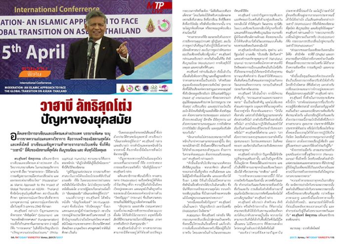 อดีตเลขาธิการอาเซียนและอดีตรมต.ต่างประเทศ บรรยายพิเศษ ระบุ การขาดความถ่อมตนทางวิชาการ คือรากเหง้าของอิสลามสุดโต่งและคลั่งไคล้ อาเซียนเผชิญความท้าทายจากอาระไบเซชั่น ซึ่งก็คือ “วะฮาบี” ยี่ห้อของอิสลามที่สุดโต่ง สัมบูรณนิยม และ ดันทุรังไร้เหตุผล