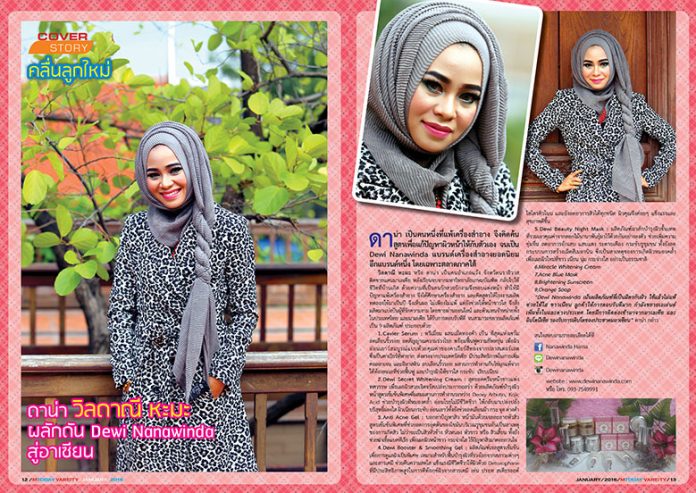 “Dewi Nanawinda เน้นผลิตภัณฑ์ที่เป็นมิตรกับผิว ใช้แล้วไม่แพ้ ช่วยให้ใส ขาวเนียน ลูกค้าให้การตอบรับดีมาก กำลังขยายเอเย่นต์เพิ่มทั้งในและต่างประเทศ โดยมีการติดต่อเข้ามาจากมาเลเซีย และอินโดนีเชีย รองรับการเติบโตของประชาคมอาเซียน” ดาน่า กล่าว