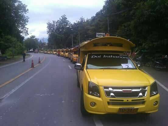 รถสาธารณะสองแถวเหลืองจอมทอง-อินทนนท์ กว่า 40 คัน ตั้งจุดบริการรับ-ส่งผู้โดยสาร ที่จะขึ้นไปเที่ยวบนยอดดอยอินทนนท์ ตั้งแต่บริเวณสนามด้านหน้าที่ทำการอุทยานแห่งชาติดอยอินทนนท์ กม.31 เพื่อแก้ไขปัญหารถติดบนยอดดอย โดยรถนักท่องเที่ยวสามารถจอดรถไว้ที่ลานจอดรถที่ทำการอุทยานฯ อัตราค่าบริการ คนละ 100 บาท ไป-กลับ เที่ยวได้ทั้งวัน ไม่ว่าจะเป็น #ยอดดอยอินทนนท์ #กิ่วแม่ปาน #พระมหาธาตุเจดีย์นภเมทนีดลและพระมหาธาตุเจดีย์นภพลภูมิสิริ โดยซื้อคูปองที่จุดบริการ ไว้โชว์รถสาธารณะสองแถวเหลือง
