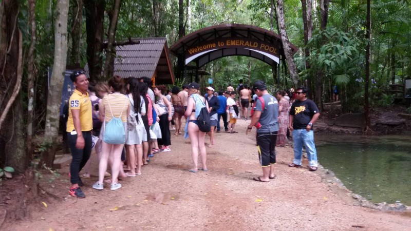 นายวุฒิพงษ์ ชูสังราช หัวหน้าเขตรักษาพันธุ์สัตว์ป่าเขาประ-บางคราม เปิดเผยว่า ในช่วงมรสุมปีนี้พบว่ามีนักท่องเที่ยวเดินทางมาเที่ยว สระมรกตจำนวนมาก เฉลี่ยวันละไมต่ำกว่า 1,000 คน โดยเฉพาะนักท่องเที่ยวชาวจีน มีจำนวนมากเป็นพิเศษ ส่วนหนึ่งคาดว่า น่าจะมาจากอยู่ในช่วงมรสุม คลื่นลมแรง ทำให้นักทาองเที่ยวเกิดความกังวลในเรื่องของความปลอดภัย ภายหลังเกิดเรือล่มที่ จังหวัดภูเก็ตเมื่อวันที่ 5 ก.ค.ที่ผ่านมา เป็นเหตุให้มีผู้เสียชีวิตและบาดเจ็บจำนวนมาก ซ