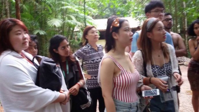 วันที่ 20 ก.ค.61 นักท่องเที่ยว ทั้งไทยและต่างชาติ ทยอยเดินทางไปเที่ยว ที่สระมรกต เขตรักษาพันธุ์สัตว์ป่า เขาประบางคราม แหล่งท่องเที่ยวอันซีน ต.คลองท่อมเหนือ อ.คลองท่อม จ.กระบี่ เป็นจำนวนมาก บรรยากาศคึกคัก ส่วนใหญ่จะเป็นนักท่องเที่ยวชายจีน ร้อยละ60-70 รองลงมาชาวไทย และยุโรป มาเป็นกรุ๊ปทัวร์ จำนวนนับร้อยคน ส่งผลให้บริเวณทางเดินชมธรรมชาติ ไปยัง สระมรกตเนืองแน่นไปด้วยนักท่องเที่ยว ส่วนใหญ่จะลงเล่นน้ำ และเดินชมธรรมชาติป่าพรุที่อุดมสมบูรณ์ด้วยพันธุไม้นานาชาติ เจ้าหน้าที่เขตรักพันธุ์ฯ ต้องเพิ่มความเข้มงวดตรวจสัมภาระ เพื่อความปลอดภัย และคอยจัดระเบียบอำนวยความสะดวก นักท่องเที่ยว ห้ามนำสิ่งของ อาวุธ หรือ สิ่งเทียม อาวุธ อาหาร เครื่องดื่มมึนเมา เข้าไปในบริเวณสระมรกต