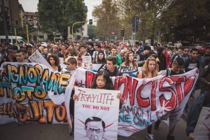 เสื้อแดงเอาอีกแล้ว! ภาพสมัยนายกฯไปอิตาลี่ โมเม คนอินโดฯชุมนุมต้าน’นั่งปธ.อาเซียน