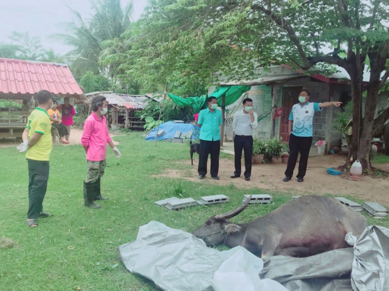 ซึ่งทางปศุสัตว์จังหวัดสุรินทร์ ได้ดำเนินการเข้าไปตรวจสอบ พร้อมกับประชาสัมพันธ์ให้ทาง อบต.,ปศุสัตว์อำเภอ, และ อสม.เข้าไปดูแลตรวจซุ่มในกลุ่มเสียงที่กินเนื้อกระบือเข้าไปประมาณ 200 ราย พร้อมให้มารับการฉีดวัคซีนในการป้องกันโรคพิษสุนัขบ้า และผู้ที่ได้สัมผัสกับกระบือที่ตาย เข้ามาฉีดวัคซีนที่สาธารณสุขได้ทุกที่ และถ้าหากสงสัยวัวกระบือว่าจะเป็นโรคพิษสุนัขบ้านให้รีบติดต่อกับสัตวแพทย์จะได้เข้าไปควบคุมดูแล