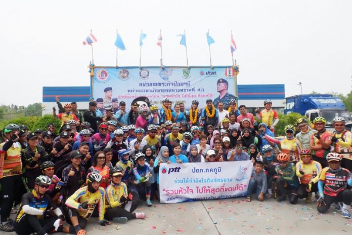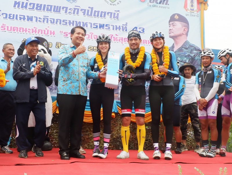 ในการนี้ นอ.ได้มอบปลากุเลาเค็ม ซึ่งเป็นของขึ้นชื่อของอำเภอหนองจิกให้กับตัวแทนคณะนักปั่นอีกด้วย ณ สถานีบริการน้ำมัน ปตท.(ขาเข้า) ตำบลบางเขา อำเภอหนองจิก จังหวัดปัตตานี ผลการปฏิบัติเป็นไปด้วยความเรียบร้อย