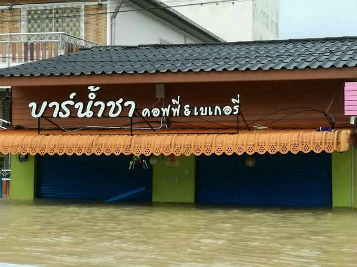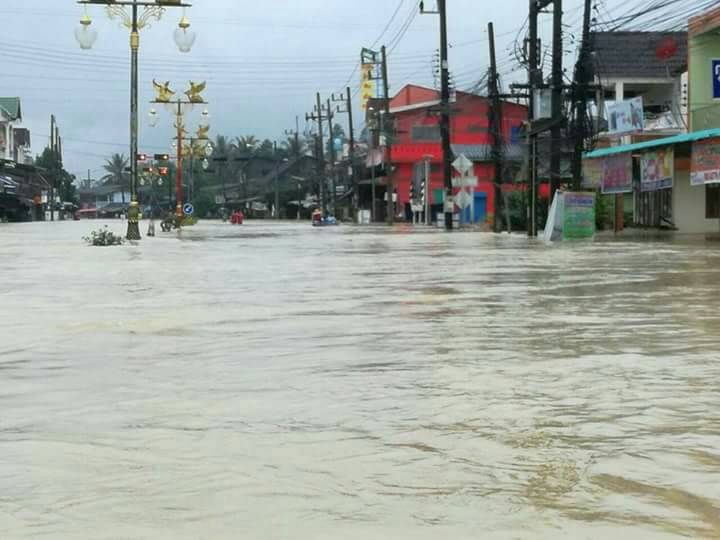 ที่อำเภอทุ่งสง ฝนที่ตกหนักตลอดคืนส่งผลให้เกิดน้ำท่วมหนักทั้งอำเภอ พร้อมทั้งเจอน้ำป่าไหลทะลักเข้าตัวย่านการค้าอีกระลอกตลอดกลางดึก ทำให้ถนนหลายสายเกิดน้ำท่วมสูงกว่า 1 เมตร…