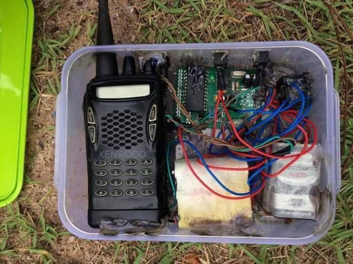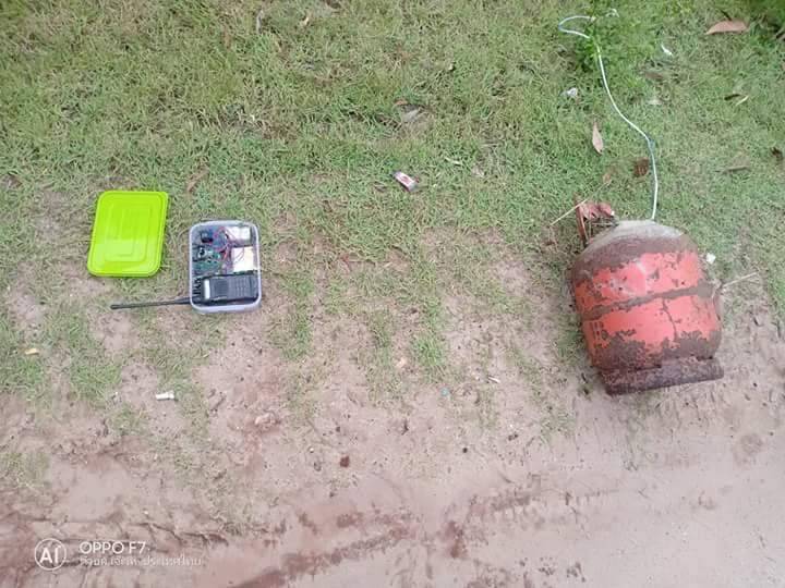 เมื่อ 15 ก.ย.2561 เวลาประมาณ 15.00 น. มีผู้พบวัตถุต้องสงสัยบริเวณริมถนนภายในหมู่บ้านตะปอเยาะ ม.1 ต.เจ๊ะเห อ.ตากใบ จ.นราธิวาส จากการตรวจสอบของของชุดเก็บกู้จังหวัดนราธิวาส เป็นถังแก๊สปิกนิคขนาด 4 กก. สีส้ม น้ำหนักรวมประมาณ 20-25 กก. จุดชนวนระเบิดด้วยวิทยุสื่อสารและวงจร DTMF พร้อมทำงาน สามารถเก็บกู้ โดยปลอดภัย มีส่วนประกอบ ดังนี้
