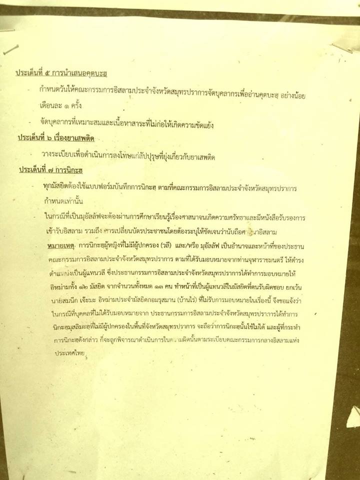 มุสลิมจังหวัดสมุทรปราการ ไม่ยอมรับสัตยาบัน กอ.สมุทรปราการ ที่กำหนดให้การ’นิกะห์’ กรณีกับมุอัลลัฟ จะต้องให้อิหม่ามเป็นวลี จนกลายเป็นกระแสความขัดแย้งในชุมชน