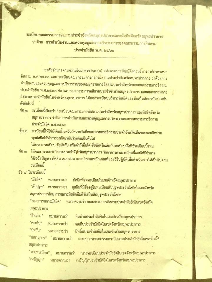 ระเบียบกอ.สมุทรปราการว่า ด้วยการดำเนินงานและควบคุมดูแลการบริหารงานของคณะกรรมการอิสลามประจำมัสยิด 2561