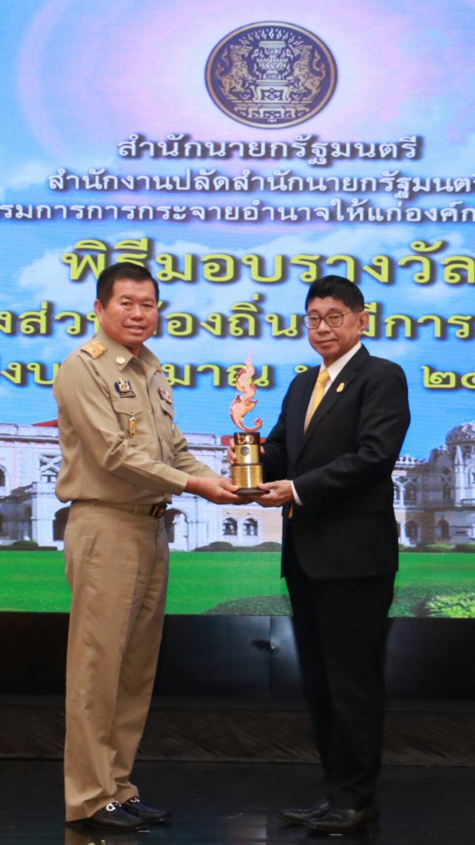 นายสุรศักดิ์ เรียงเครือ รองปลัดสำนักนายกรัฐมนตรี กล่าวรายงานว่า สำนักงานปลัดสำนักนายกรัฐมนตรี โดยคณะกรรมการการกระจายอำนาจให้แก่องค์กรปกครองส่วนท้องถิ่นมีนโยบายในการสนับสนุนและส่งเสริมให้องค์กรปกครองส่วนท้องถิ่น (อปท.) มีการปรับปรุงและพัฒนาระบบการบริหารงานไปสู่การบริหารจัดการที่ดี รัฐบาลจึงได้จัดสรรเงินอุดหนุนเป็นรางวัลให้แก่ อปท. ที่มีการบริหารจัดการที่ดีตั้งแต่ปี พ.ศ. 2546 มาอย่างต่อเนื่อง เพื่อประกาศเกียรติคุณและยกย่องในความมุ่งมั่นที่ได้มีการพัฒนาการบริหารจัดการให้มีประสิทธิภาพ มีความโปร่งใส และเปิดโอกาสให้ประชาชนเข้ามามีส่วนร่วมในการพัฒนาท้องถิ่นให้มีความเจริญก้าวหน้าอย่างยั่งยืน ในปีงบประมาณ พ.ศ. 2561 ได้จัดสรรเงินอุดหนุนเพื่อเป็นรางวัลให้แก่ อปท. ที่มีการบริหารจัดการที่ดี จำนวน 200 ล้านบาท โดยแบ่งเงินรางวัลออกเป็น 2 ส่วน คือ 1. รางวัลประเภทโดดเด่นและประเภททั่วไป จำนวน 41 แห่ง เงินรางวัลรวม 150 ล้านบาท และ 2. รางวัลจูงใจให้แก่องค์กรปกครองส่วนท้องถิ่นที่ผ่านเกณฑ์การประเมินในรอบสุดท้าย และรางวัลองค์กรปกครองส่วนท้องถิ่นที่มีผลคะแนนในรอบการประเมินของสถาบันการศึกษา รวมจำนวน 107 แห่ง เงินรางวัลรวม 50 ล้านบาท